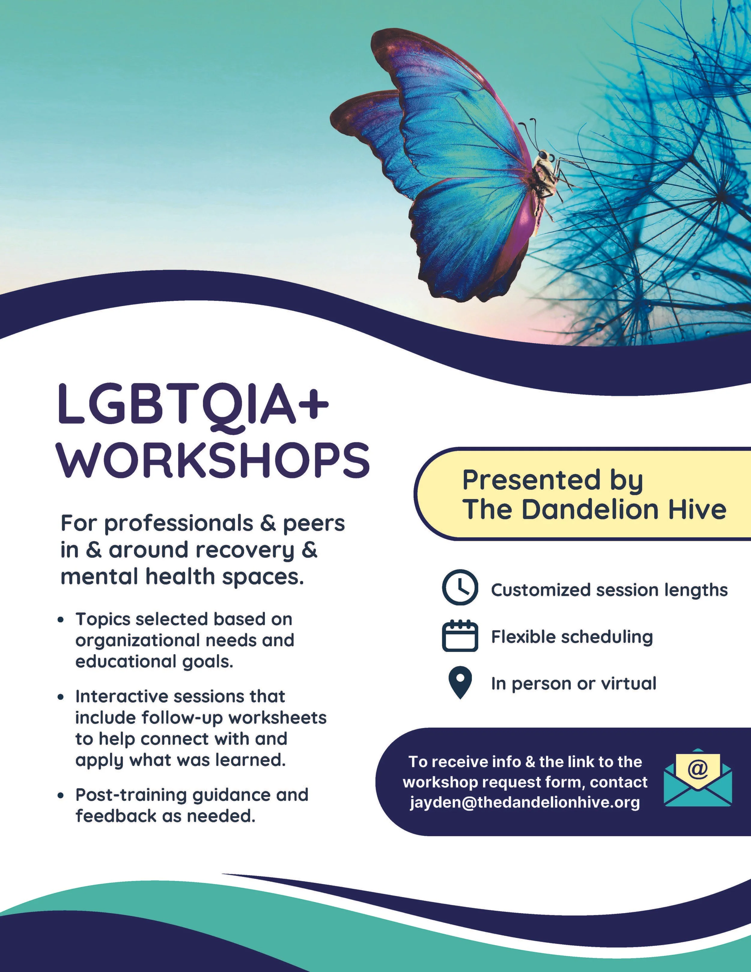 The Dandelion Hive acknowledges all of the intersections of the LGBTQIA+ community and works to center them in conversations around mental health and recovery.